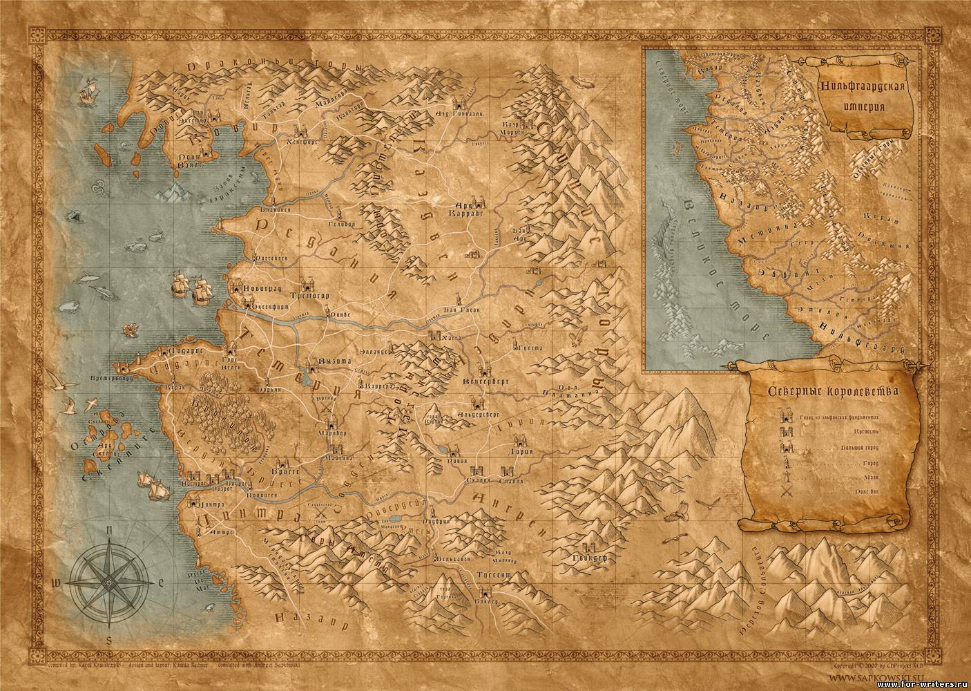 Преимущество будем отдаваться именно тем картам, которые не публиковались в самих книгах. Например - карты мира Ведьмака, описанного Анджеем Сапковским. С них и начинается наш новый цикл публикаций “Карты воображаемых миров”.